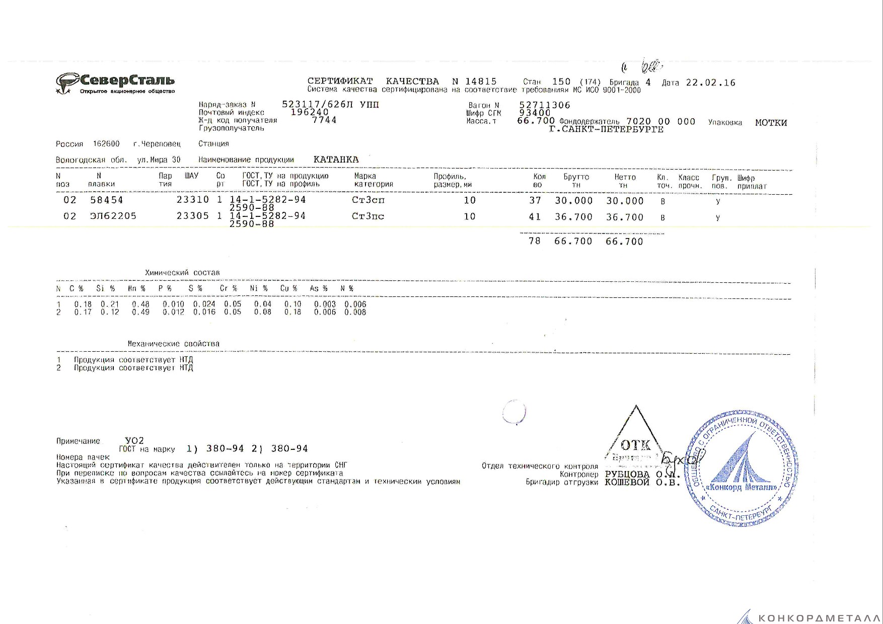 С каждой товарной позицией мы предоставляем все сертификаты и паспорта качества, а также товарно-транспортную накладную.